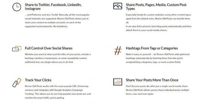 Social Media Marketing has taken the driverβs seat in online marketing. Get your business to the top with time-tested marketing strategies from Revive Social. Revive Old Posts is an innovative writing tool that allows you to share post titles with hashtags, custom text, etc. You can also shorten your share links. Moreover, the hashtags are added automatically as fetched from assigned tags, categories, or custom fields. With the help of the best online writing tools, targeting an audience becomes simple.