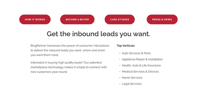 Ring Partner is an excellent and efficient type of Affiliate Network that harnesses the power of consumer interactions to deliver the inbound leads you want and when you want them the most. If you want high-quality leads, then this is the place to be.