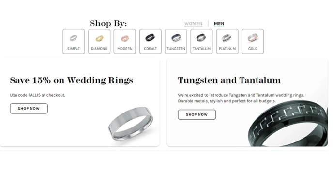 Ritani is the top place to buy men’s wedding bands consisting of various metal material rings, including tungsten, cobalt, 14kt yellow gold, platinum, 18kt white gold, 18kt rose gold, and tantalum. They come under different prices and unique patterns that give you an exciting shopping experience at your fingertips.