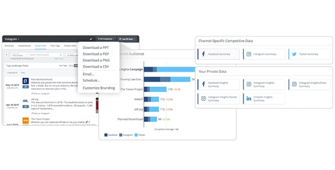 Rival IQ is the best social media analytics platform that can integrate with all social media platforms similar to Zoho Social and Sprout Social; those are having great integration tools and dashboards to export reports.