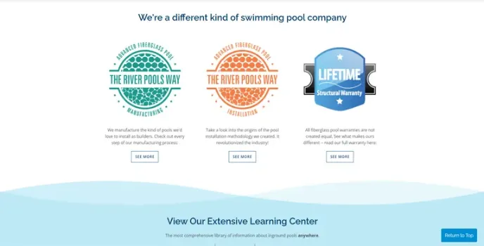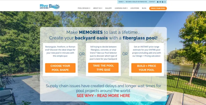 RIVER POOLS are independent fiberglass pool dealers, installers, innovators, and educators globally, who can enhance customersโ need to feel comfortable about the perfect blend of curb appeal and swim space with their inground swimming pools. They also sell a few accessories that must be considered while designing a pool, such as color, lights, heater, water features, automatic cleaners, saltwater chlorinators, tile selections, landscaping. Their waterline and cascade features can leave a visual impact and aesthetic value with pool covers and lightning.