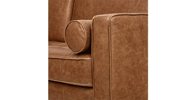 - Soft top-grain leather and tapered wood legs