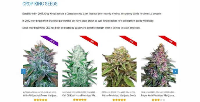 - Crop king seeds include auto-flowering, high CBD, regular, etc