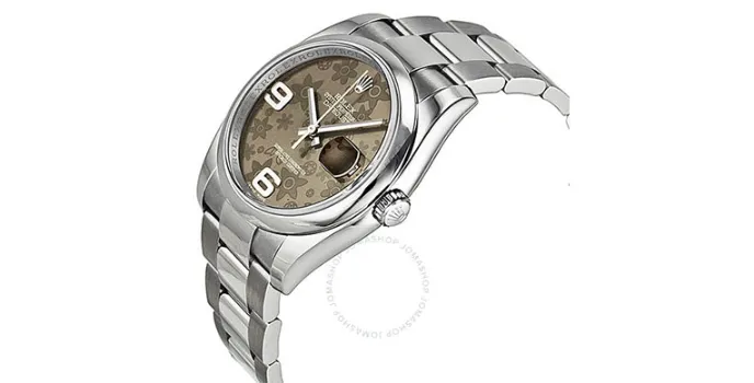 Rolex will provide you with advanced features and boosts your personality in anything that you wear. This is an automatic stainless steel oyster bracelet, brown floral dial with silver-tone hands and also consists of automatic time adjustment, date. This wristwatch also has a look that would upgrade your personality the instant you wear it.