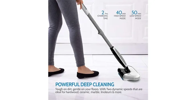 Rollibot has brought forth this exceptional hard floor cleaner mop which makes it among the best hard floor cleaner mops. This makes for a truly deluxe hard floor cleaner mop which spins and mops to scrub out the stubborn grime and dirt. Makes for this two in one electric mop which comes with cleaning and polishing functions for the hard floors. Has a rechargeable Li-ion battery that provides for enough time for cleaning.