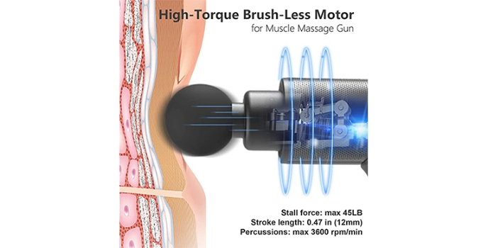 Choosing the best deep tissue massage gun ensures you a high-torque brushless motor that can usually reach up to the stroke speed of 3600 rpm percussion per minute. Its stroke length is 0.47 install force and can reach up to 45 LB.