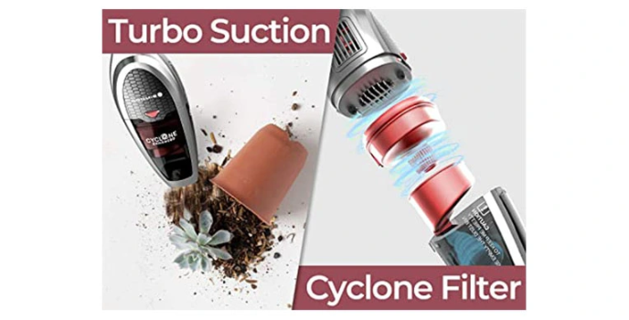 It has a 2200mAh Li-ion Battery long-lasting battery capability, which allows the cleaning to finish in a single charge. The vacuum cleaner can be easily switched on with a touch of a button and tackle dirt, dust, and debris on furniture, soft furnishings, stairs, and car interiors. It can be called a carpet and hard floor vacuum cleaner.