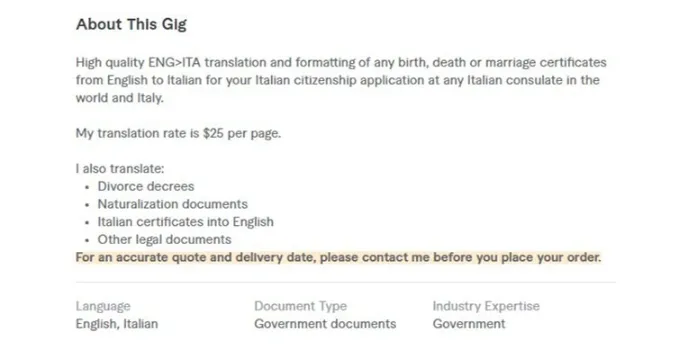 The Fiverr services from Rosaliat are high in quality and easily translate English into Italian translation with added benefits of formatting any birth, death, or even marriage certificates.