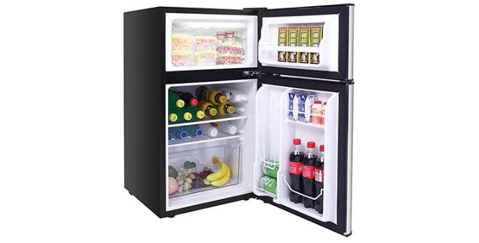 While this refrigerator occupies smaller space for placing than magic chef and willz refrigerators, Portable and space-saving Rovsun double-door refrigerator offer efficient performance through its advanced mechanical temperature cooling and compressor technology. That enables you to regulate the temperature of the fridge in different range adjustments. A roomy inside of top mount freezer Rovson refrigerator features separate freezer compartments. Two slide-out glass shelves offer a massive capacity of ample storage space to meet your daily needs, freezing foods and beverages at any time. Itโs a perfect complement to your home and offices.