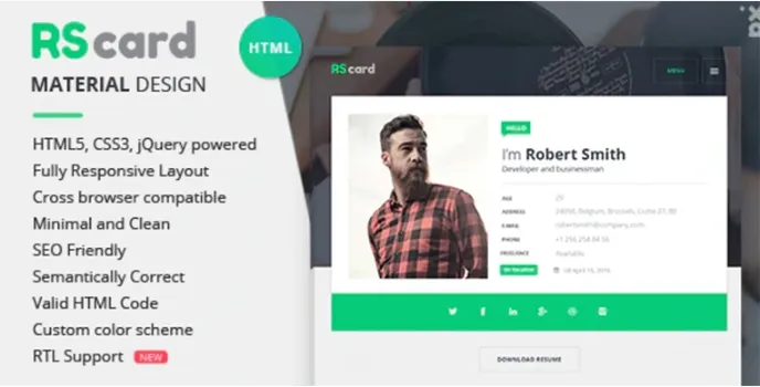 RScard Material Design - Universal Design CV Html Resume Template For Individuals And Companies Use