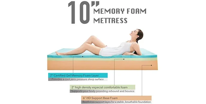 This king-size mattress from Ssecretland is made using the best quality materials and a three-layered 10” memory foam, which offers ultimate comfort to the users. The HD base support foam includes a hypoallergenic cover layer that can easily be washed according to your convenience.
