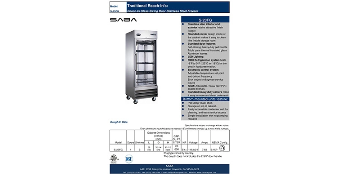 Freezers are valuable to home and industrial appliances that help keep food fresher and cooler for longer periods. Under-counter freezers are one form of a freezer that can be conveniently positioned underneath your counters and are easy to reach for children. The SABA Heavy Duty Commercial One Door Reach-In Freezer is an example of a user-friendly device.
