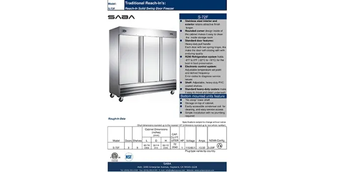 Features of Saba Heavy Duty Commercial Reach-in Freezer