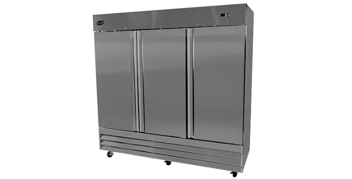 Stay open feature is only available in the best three-door commercial freezers, which is extremely beneficial for the foodservice industry. Saba Heavy Duty Commercial Reach-in Freezer self-closing door helps for quick and easy loading while ensuring the door closes properly.