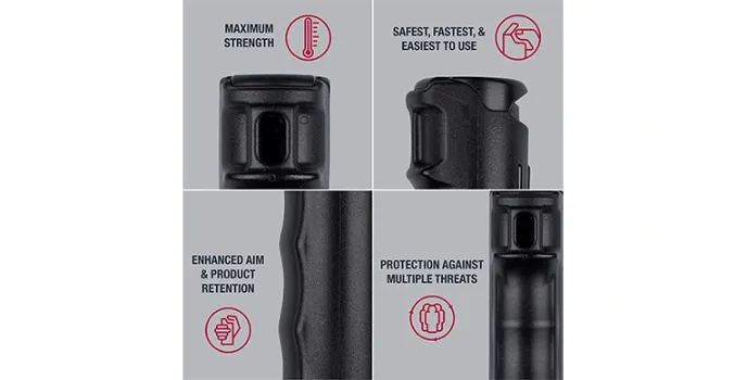 The Sabre pepper spray gun is very compact and can easily be kept in a backpack, channel handbag, and pocket. It is integrated with 120 lumens, a safety switch, and a belt holster.