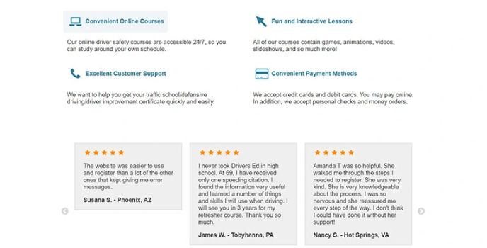 Many online learning platforms are very obsolete and are not working well on smartphones. In the past couple of years, Safe2Drive has made major updates and works very well on smartphones and tablets. Safe2Drive provides excellent customer support and has won an award for "outstanding customer service."