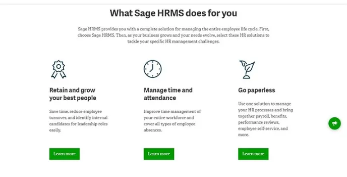 Users get what they pay for by customizing a plan for their company. It emphasizes talent management solutions to improve employee engagement, which will end up profiting your company. Sage HRMS enables you to direct your workforceβs energy in the right direction and aligns your employees with business goals. Alongside, it also assists you in retaining your star performers efficiently. If you are new to this and require additional help, Sage HRMS has training programs to learn from the best. Its knowledgebase enables you to access product documentation, articles, latest updates, and much more. For adding a bit more to your range of options, Green60 or Pabbly could be your savior for the same. Also, Sage University extends courses specially designed for job roles. Itβs expert challenge assessments help you in deciding whether you will gain profit from a particular investment or not. Moreover, it has excellent customer support as it has a bunch of highly qualified executives. It is providing 24/7 assistance over any issues.