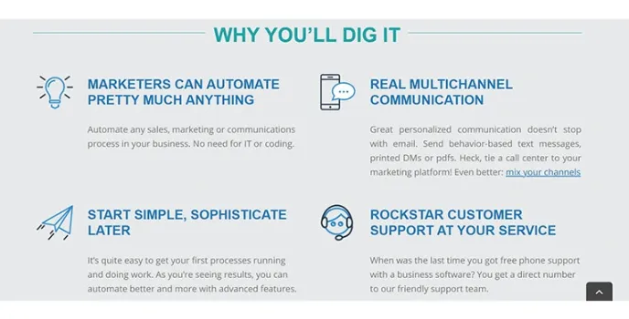 The marketing tool is quite useful, and you can get in touch with the team within a matter of seconds. Simply call their direct number and speak to them with whatever query you have.