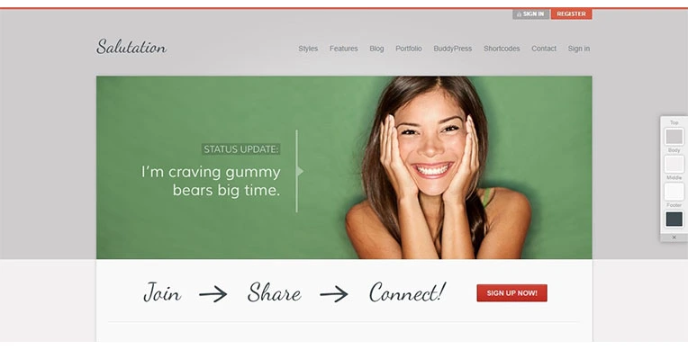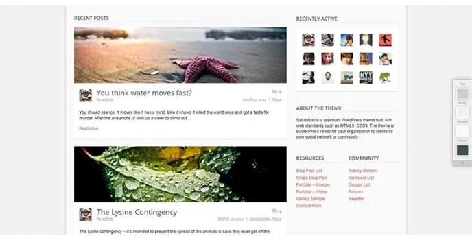 Salutation is highly rated among the likes of best WordPress themes. Especially with its high response rate, it is one of the most popular themes for establishing a community portal. The theme is well-formatted and colorful, making it pleasing to the eyes as well as easier to use.