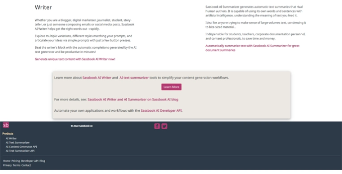 Sassbook AI - Smart Content Writer To Generate Automatic Text Summaries