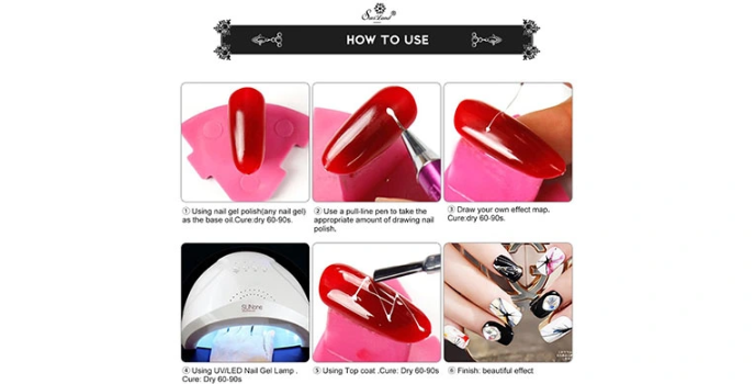 The spider nail polish from Saviland has a gum consistency which is perfect for very fine lines like a spider's web. This nail design helps the nails and makes them special and fashionable. The nail design is suitable for all people who love the beauty of the mail and especially for beginners as well as elegant women.