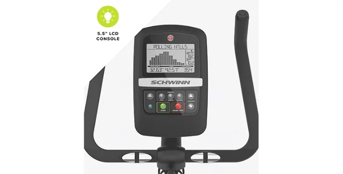 Schwinn fitness bike comes with an LCD with inbuilt workout programs. Can connect the LCD to Bluetooth by which users can set, track and monitor progress and connect to Zwift app for structured workouts and virtual routes.