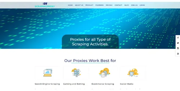 Scraping Proxy gives reliable and dedicated proxies services that ensure users perform varied tasks, including search engine scraping, ecommerce scraping, social media, gaming, and botting by a single account.