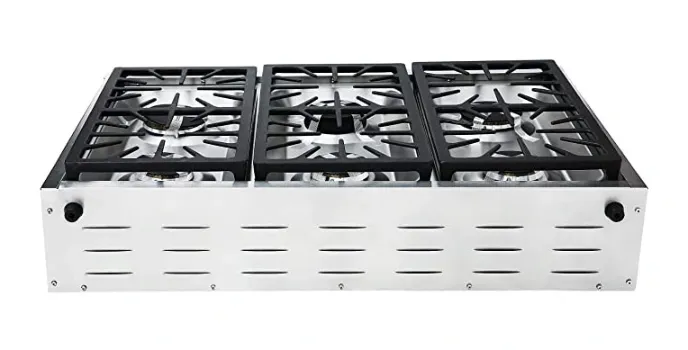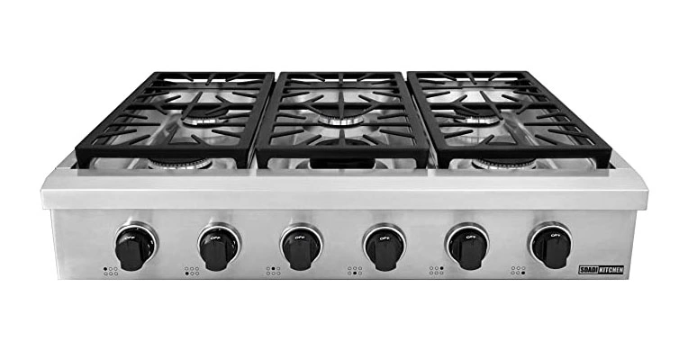 SDADI kitchen gas cooktop is a versatile product that has found a place in domestic and commercial kitchens. The product has 6 burners and can allow handling of cooking utensils with ease. The utensils can slide on top of the stainless steel cooktop grates. The 6 burner gas cooktop with a griddle is a great choice for a large family. The product is LP convertible.