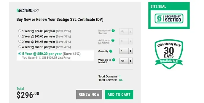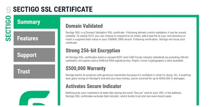 With elliptic curve cryptography technology, it provides domain control validation SSL certificates instantly. The cheap SSL certificates come with a Powerful Sectigo site seal on the home page; seeing the certificate's icon on the website of Sectigo, customers can understand that the website is safe and secured.