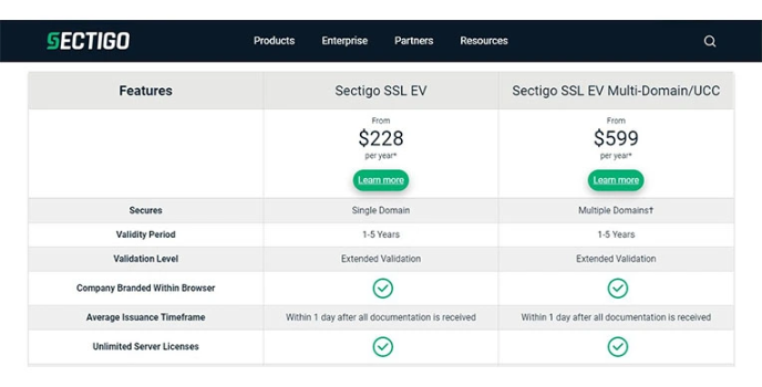 What do you think about the price of this SSL certificate? Worry not; Comodo SSL Certificates offer competitive yet friendly prices than its competitors. Users can choose from a range of options for SSL certificates six like Sectigo.