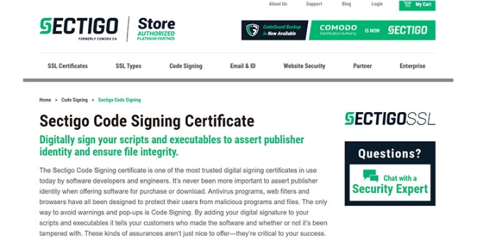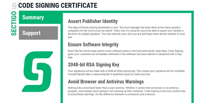 THE Comodo SSL certificate offered by Section Code Signing Comodo SSL is a great security tool that can add the utmost security to any website for securing financial transactions. By encrypting bank details, credit and debit card numbers, passwords, ATM pins, other personal information, this SSL security cert ensures to secure the customer data.