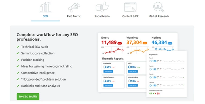 SEMrush - An All-in-One Management Platform With Smart Google Analytics Integrations