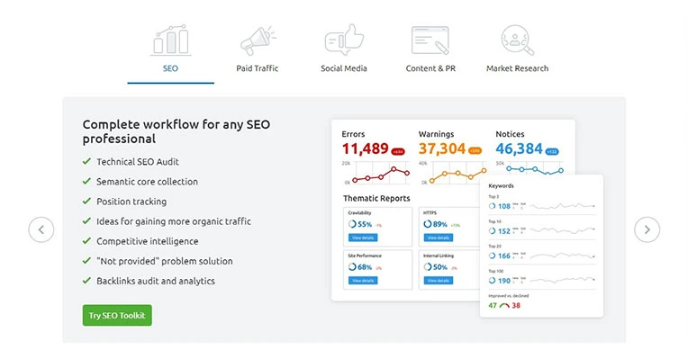 SEMrush startups tools - All-in-one marketing toolkit for digital marketing Experts