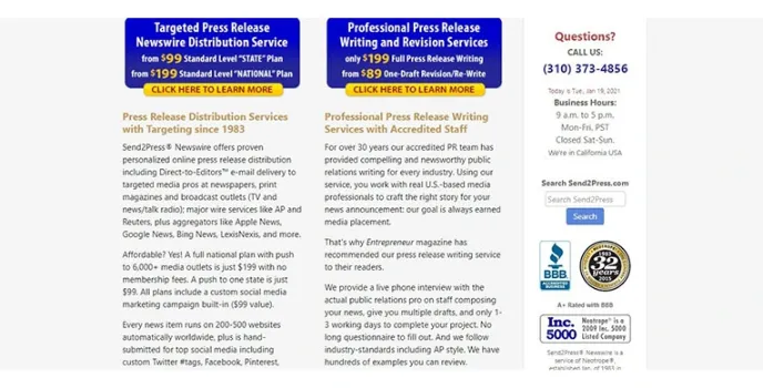 Among all the business services, every business would have its pioneer, being in the field of press release services for well over three decades. Send2Press has been at the forefront from the very beginning at targeted press release distribution & professional press release writing services since 1983.