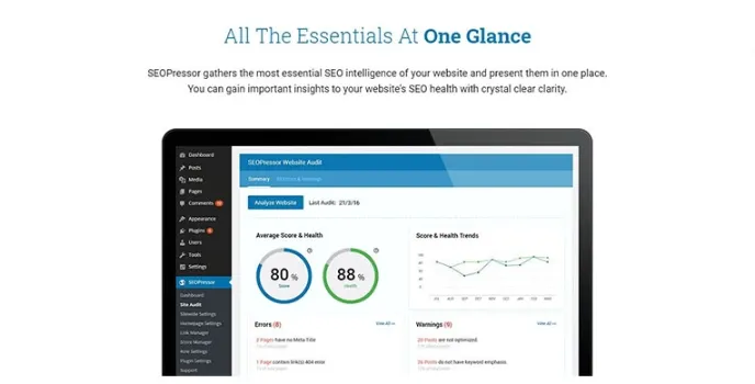 This SEO on-page optimization tool is best. It provides all essential elements in one glance by giving a well-gathered necessary intelligence of your website and presents them in all one place with your website's inside in SEO health and crystal clear clarity. The tool delivers results for more than five years by providing 23 million WordPress pages worldwide, providing a natural competitive edge. You are well-trusted customers since our first integration dating to 2010.