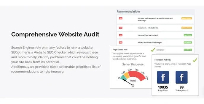 There are various SEO tools available in the market today, and search engines rely on many factors that rank a website high. Seoptimer is one such tool that helps with identifying problems that could be holding your site back. They come providing a clear, actionable, and prioritized list of recommendations.