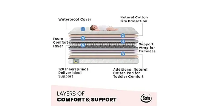 Most people just like to purchase the mattress by seeing design and thickness. Still, one should consider the technologies, breathability, and material contained in the bed for offering a high-firmness level for the baby’s health. The Serta brand ensures stability yet strong flat for prolonged use compared to Sealy and classic mattresses. By the futon intend with natural cotton, toddler features that give optimal firmness by adding an enhanced yet convoluted layer support delivers long-lasting comfort for every night’s sleep. If you have any back issues with your elder one, choose the air mattresses for healing pains.