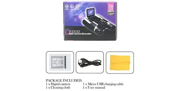 The 12X magnification power of the unit complements the high-quality camera view. The 12X magnification ability helps you to take candid pictures of 100' distant target objects. The Sgodde machine also contains a lens of 32mm. The auto focus binoculars are suitable for sporting sports, including football matches, concerts, and bidsβthe unit stores videos and photographs for video and images in readable formats, including AVI and JPEG.