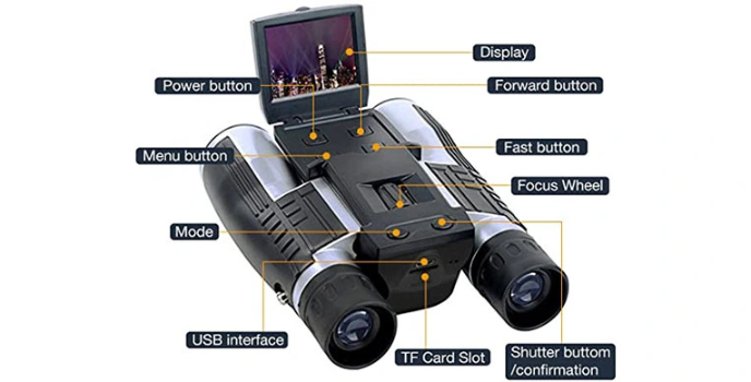 The SGODDE has a 2" high-resolution LCD screen and is designed and installed. The monitor offers simple, sharp pictures when taken. The digital camera on this unit has a rating of 5 M.P. You can take high-quality and accurate images with this digital camera binocular resolution.