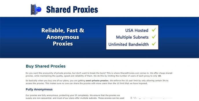 Shared Proxies - User-Friendly Shared Proxies With Real-Time Monitoring Services
