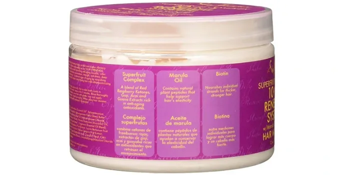 - Marula oil, shea butter, biotin ingredients