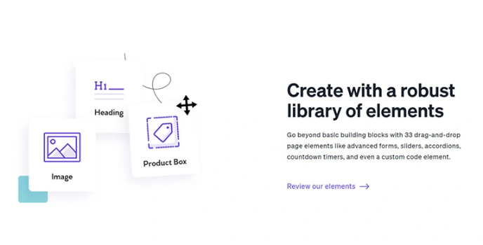 The responsive landing page builder comes including over 33 drag and drops elements like advanced forms, sliders, accordions, countdown timers, and various other custom code elements.