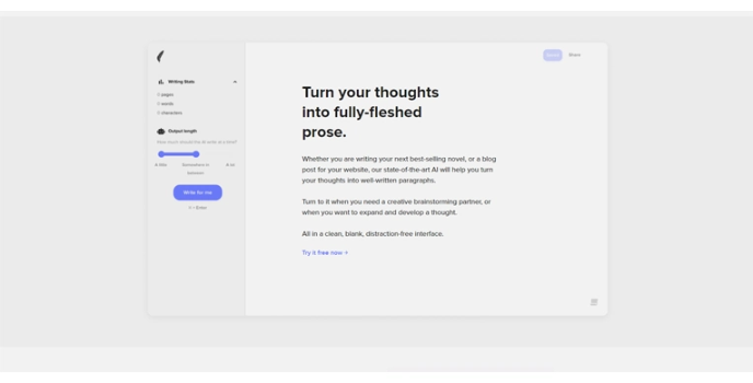ShortlyAI aims to make the creative writing experience better for its users. Many people are good with ideas, but they struggle to articulate them appropriately. That is when ShortlyAI tools come into the picture. The AI Paper Writer will help you write and modify your content in any way you tell it to do. ShortlyAI is a freely available writer assistant with various tools.