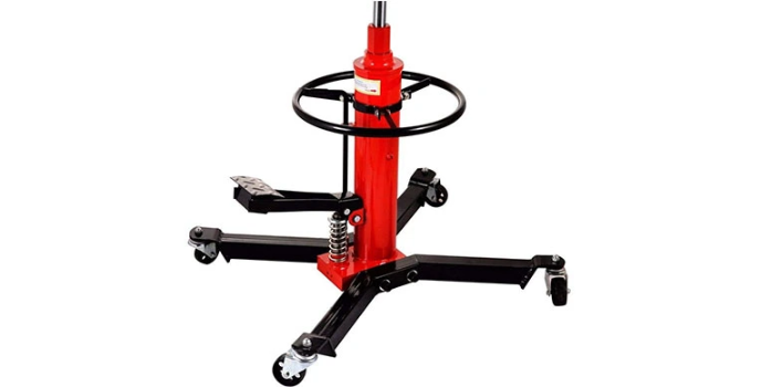 The release valve on this Colibrox transmission jack is spring-loaded and automatically results in a halt lowering action when you let go. In addition to this, the jack comes with a paint finish to resist rust and corrosion of the tool. It is quite easy to operate this tool. Swivel casters make for better maneuverability; Jack also includes a 31-inch long safety chain.