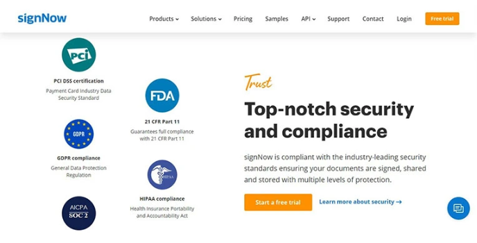 SignNow is completely compliant with industry-leading security standards, ensuring that all the documents are signed, shared, and stored with multiple protection levels.