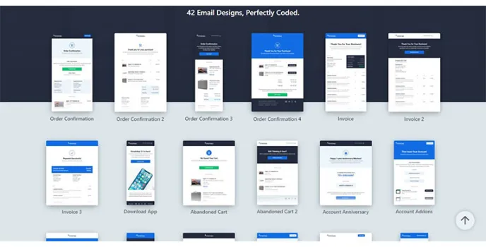 There are about 42 email design templates that make it less troublesome to create beautiful emails for digital marketing of businesses. It also offers over 20 multi-purpose cover styles, which include light or dark backgrounds for the context in the mail, Solid or line icons for notification sets, buttons, no-buttons, etc. which are primary needs to build a professional email to make an impact on clients and other important business associates. It offers templates for order confirmation emails from online shopping sites with differences in their data-packed or minimal product information.