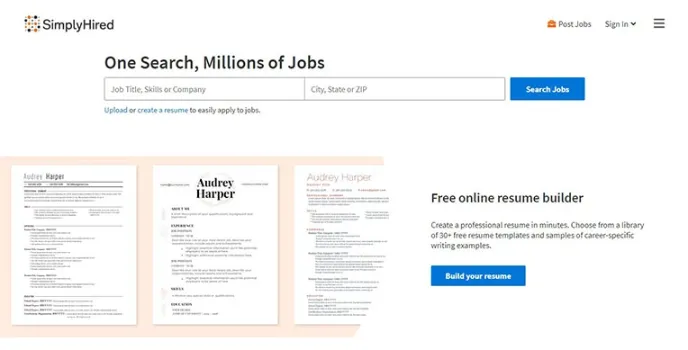 SimplyHired Job Portals - Inexpensive Online Resume Builder for Job Seekers
