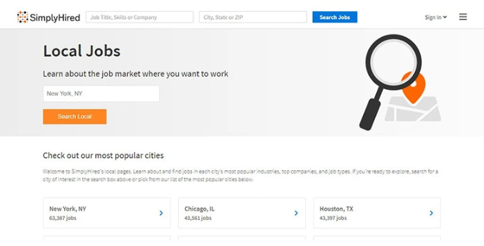 SimplyHired is a job portal website operating in 24 countries with 12 languages. Through SimplyHired, you can search for all the accessible jobs in your local area just by entering your zip code. The job portal then provides you with data regarding the local job market as well as other statistics.