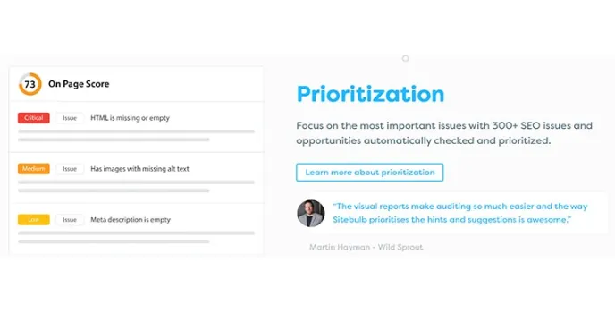 Give a pause to your search for professional SEO software with Sitebulb. From prioritizing SEO issues, getting an insight into the data, to improving communication, everything is possible with Sitebulb. Avail the benefits of pdf reporting, audit comparison, data visualization, and also the Googlebot crawler.