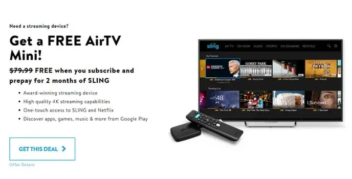 Sling TV - A Feature Pack Streaming Service with three simultaneous connection activation support